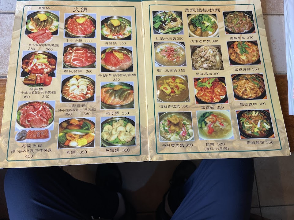 海陸鍋牛小排 蛋包飯 牛腩燴飯 牛腩鍋 鐵板牛枊 牛肉火鍋 麻辣松阪豬 靖魚雞飯 咖啡百匯 甜點 飲料 青椒牛肉炒飯 沙茶牛肉炒麵 牛肉煲 曼巴 芋泥球