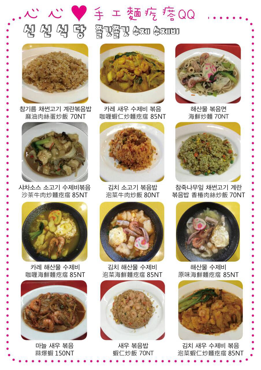 主食推薦泡菜肉絲麵疙瘩、海鮮炒烏龍加辣