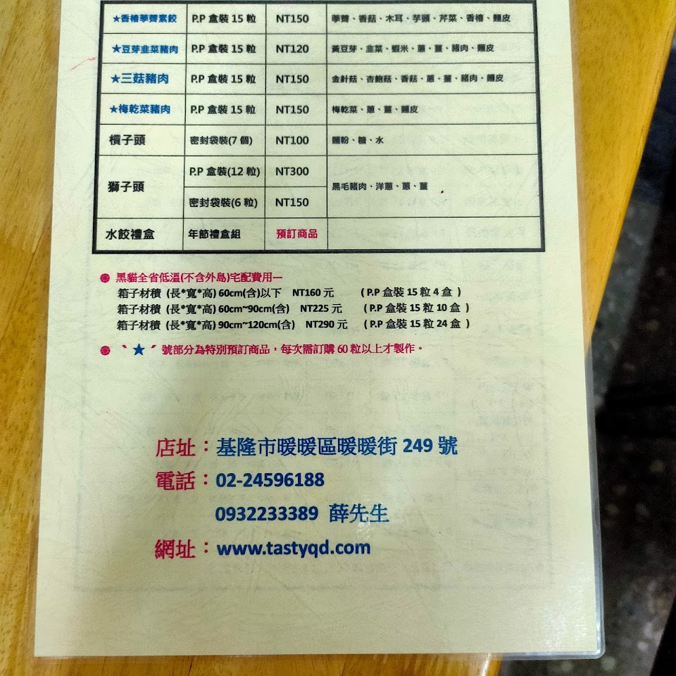 第一次在暖暖用餐,無意間在google找到這間餐館。老闆的牛腩麵的湯底是牛大骨熬煮五個多小時,湯頭喝起來很美味。麵條很有嚼勁,非常好吃。水餃很大顆飽滿,水餃皮很Q也很好吃。我們一家人喜歡麵食,謝謝老闆為我們講解他的麵食與湯頭,讓我們外地人品嚐到美味的青島手作麵食。