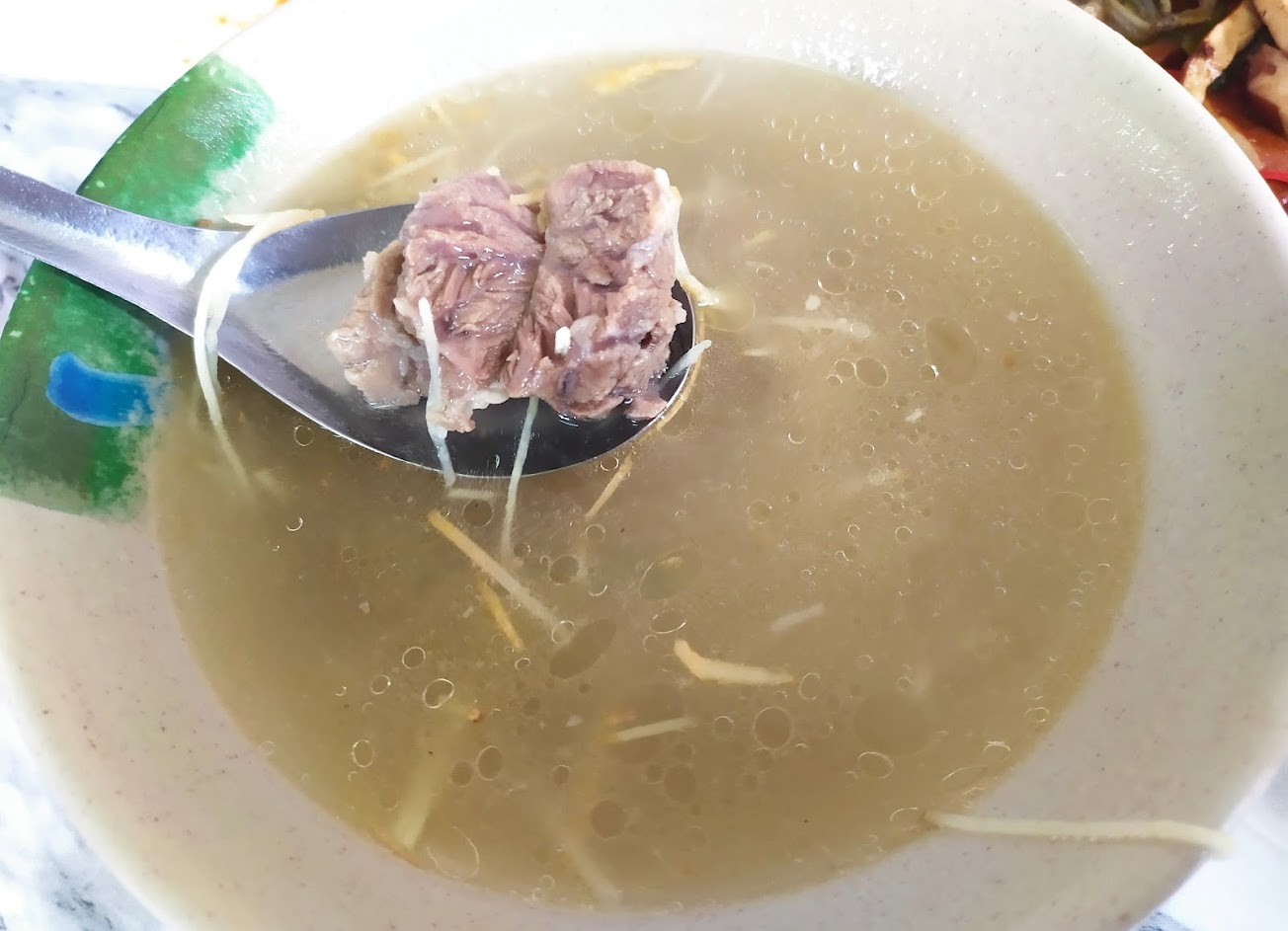 嘴邊肉湯之嘴邊肉很鮮又軟嫩好吃,湯內有放薑絲湯頭喝起來有薑味且清爽好喝。