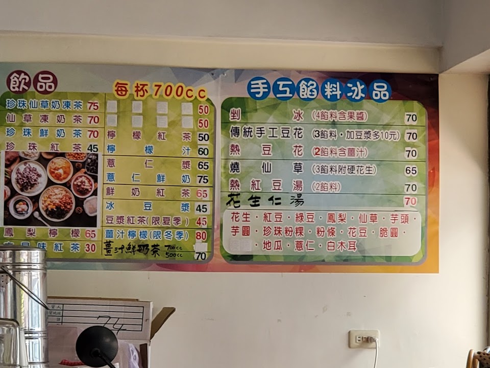 四種冰,三料豆花,七十元。還好配料都頗有水準。沒有冷氣也很讚!