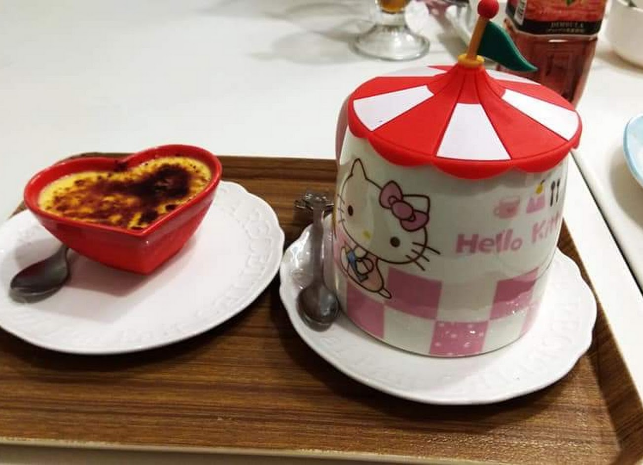 可愛的咖啡廳,飯類都會隨機做出可愛的圖案,超夢幻的! 連飲料的杯子,都超有造型!價格又超級親民哦!一客飯類約 180 元,加 100 元, 就可升級套餐, 有飲料和甜點哦!