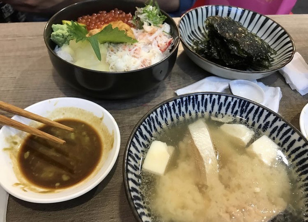 海鮮真的很新鮮,老闆魚片厚度非常剛好,而且種類真的很多,配上醋飯真的超好吃,這次點豪華海鮮丼,雖然單價高但值得,位子真的很隱密,在一間幼稚園旁的小巷子走到底才能看到店家的燈籠,內用位子真的不多,建議平日來比較不用久候。