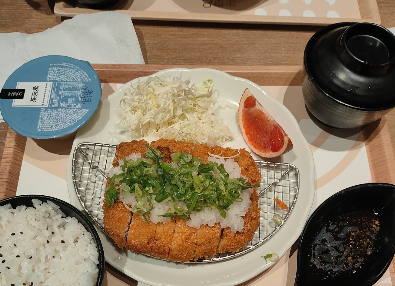 小孩喜歡味增湯跟茶碗蒸,現在沒有內用白飯湯無限供應了。學生證換白飯跟湯各一;海帶芽無限可加在湯跟飯