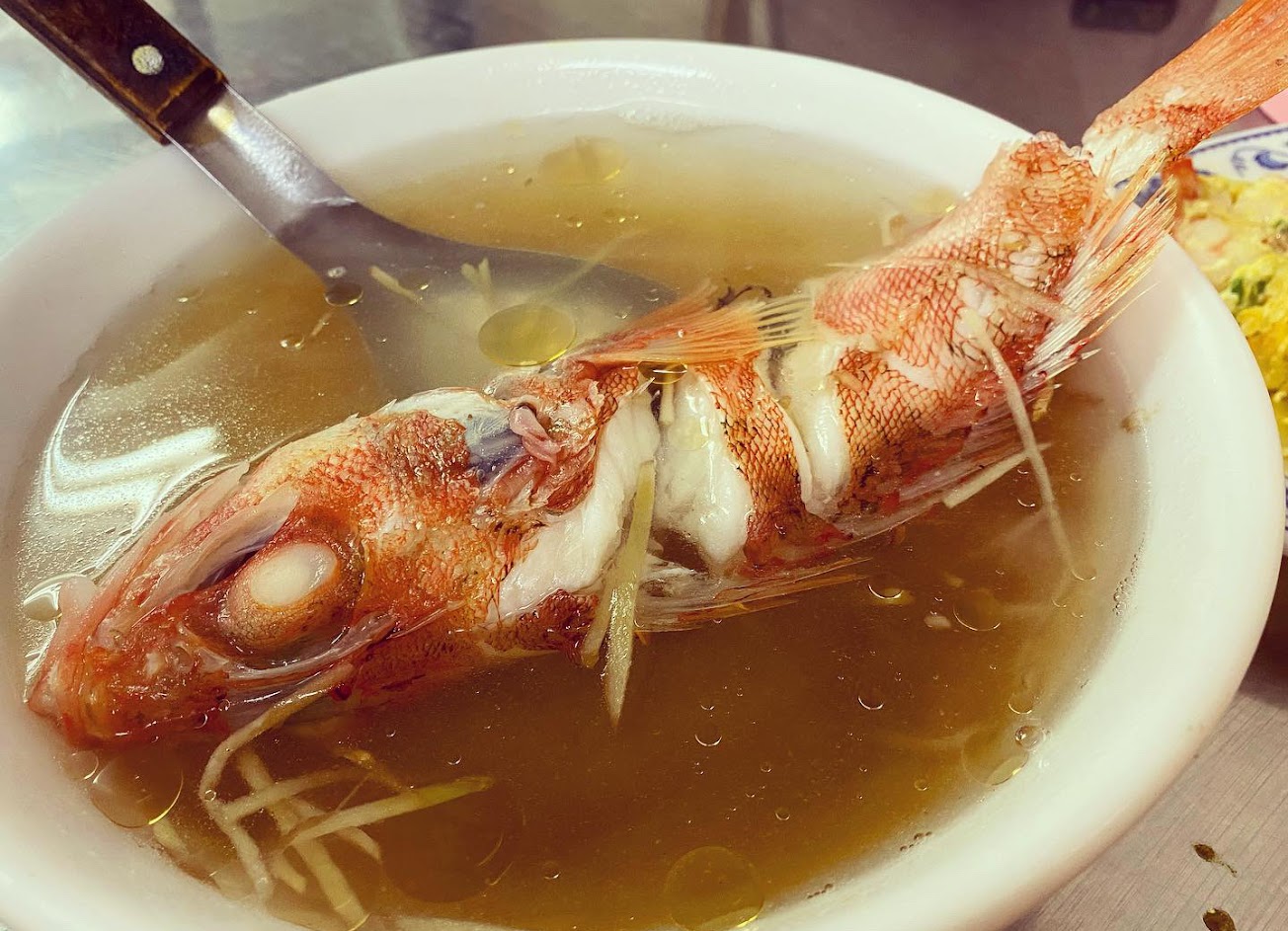 以往我們都是點菜然後叫清麵來配,多半會點炒牛肉、炒魷魚、炒三鮮,自行控制多少醬汁拌多少麵,而咖哩沙茶醬配上芥藍特別好吃,所以還會多點一盤炒芥蘭也補足青菜量,最後再配上一碗魚湯或是蛤蜊湯,薑絲清湯火候煮得很剛好,口味清甜也正好解咖哩的膩。
