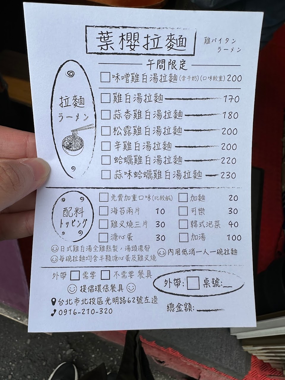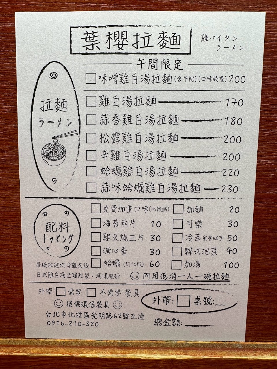 2024最新在地推薦餐廳的菜單_葉櫻拉麵 Hazakura的菜單、圖片