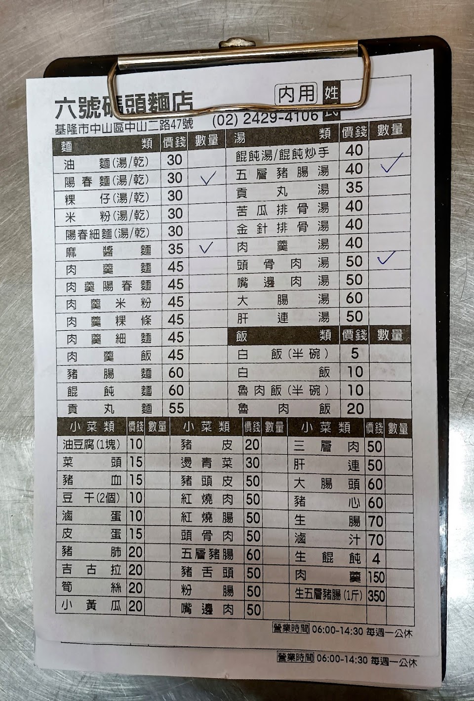 這家麵店CP值超高,很喜歡點他們家的細乾麵和魯肉飯還有招牌豬腸湯,魯肉飯是切丁狀的一般在基隆沒幾家願意這麼“搞剛”的,店家半夜就開始準備了,但要真正能進店用餐大約在5點半與6點。