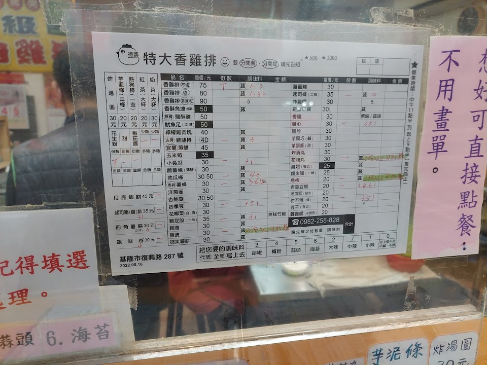 點餐規矩有點多,雞排好吃不過加蒜要 75 算高價位,這裡有脆薯炸得很酥脆,不過米血糕太硬、百頁太軟,不是很喜歡。