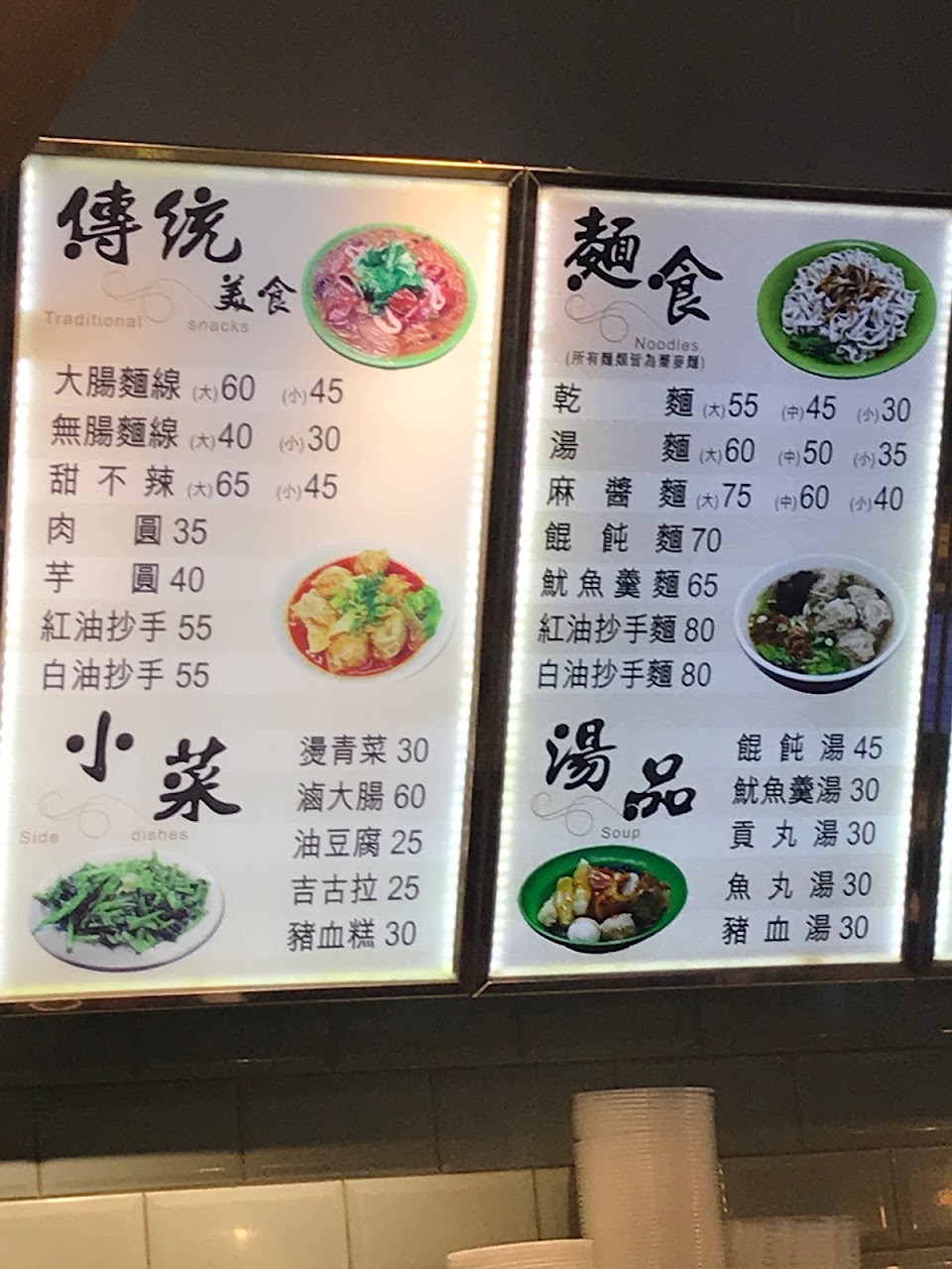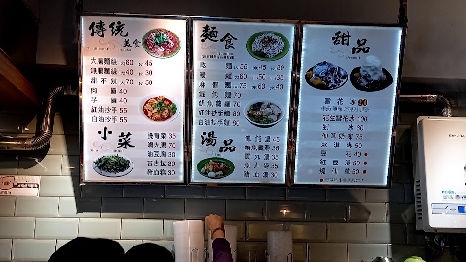 大腸麵線 110元的花生雪花冰 甜不辣湯 芋粿