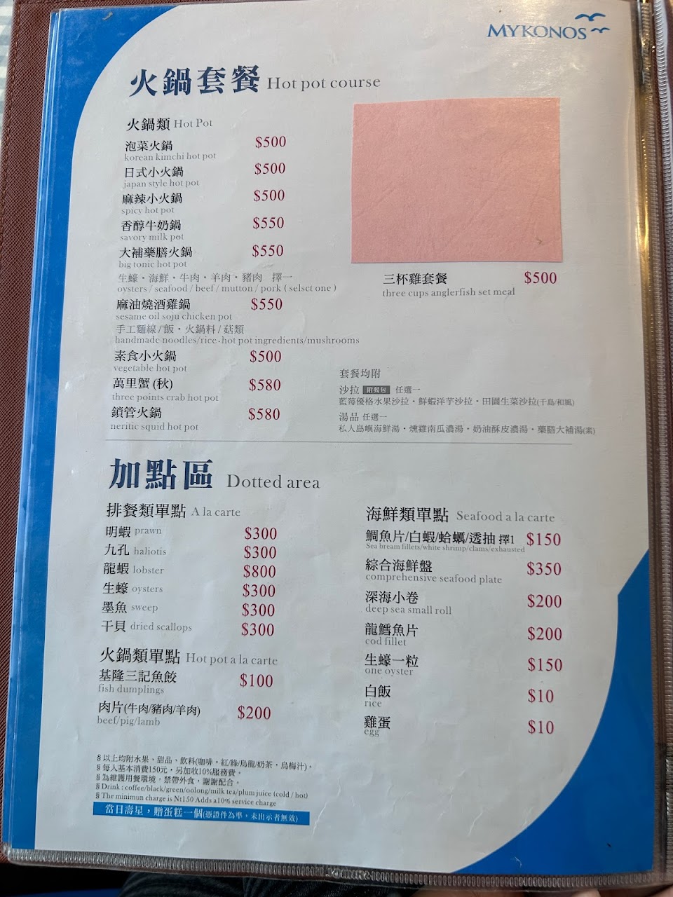 10/26晚上用餐,點食鎖管火鍋,鎖管份量足,新鮮好吃還帶甜味,值得推薦!置於價格仍然需加10%服務費……所以有些偏貴。
