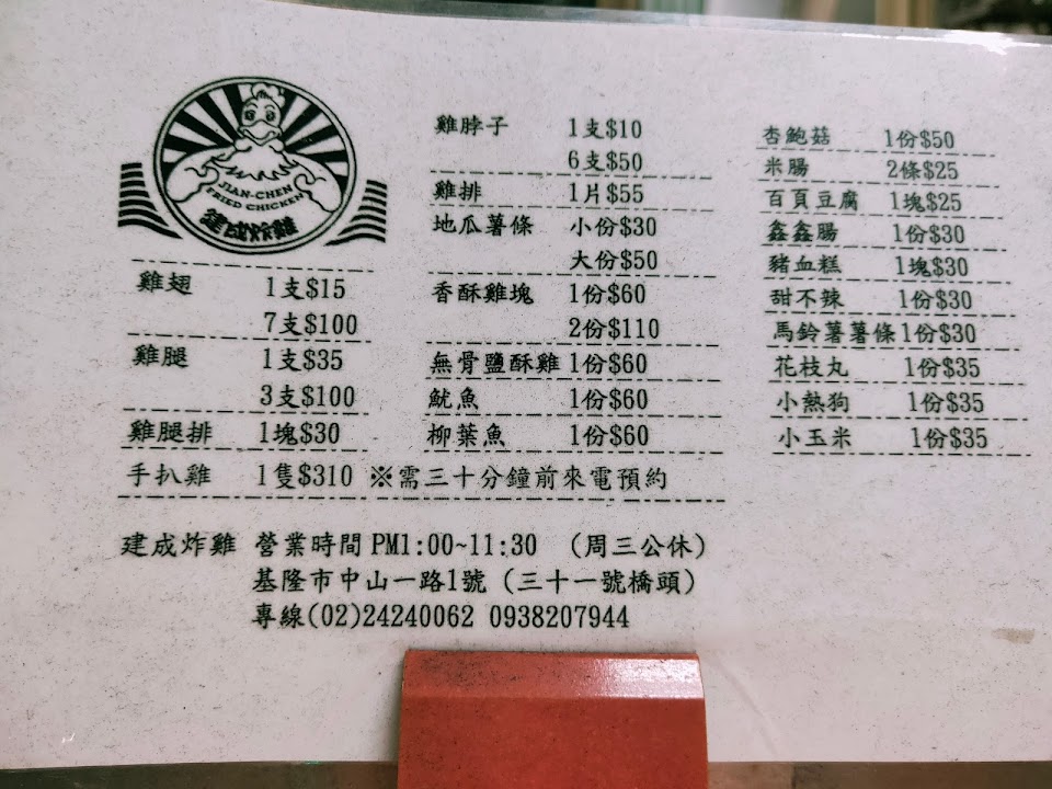 建成炸雞最推薦的就是他們的炸雞翅,一支15元7支100的價錢實在很可以,炸腿排跟炸雞腿也很好吃,其他的就跟一般炸雞店差不多,喜歡傳統炸雞的人可以來買買看,好吃又不貴