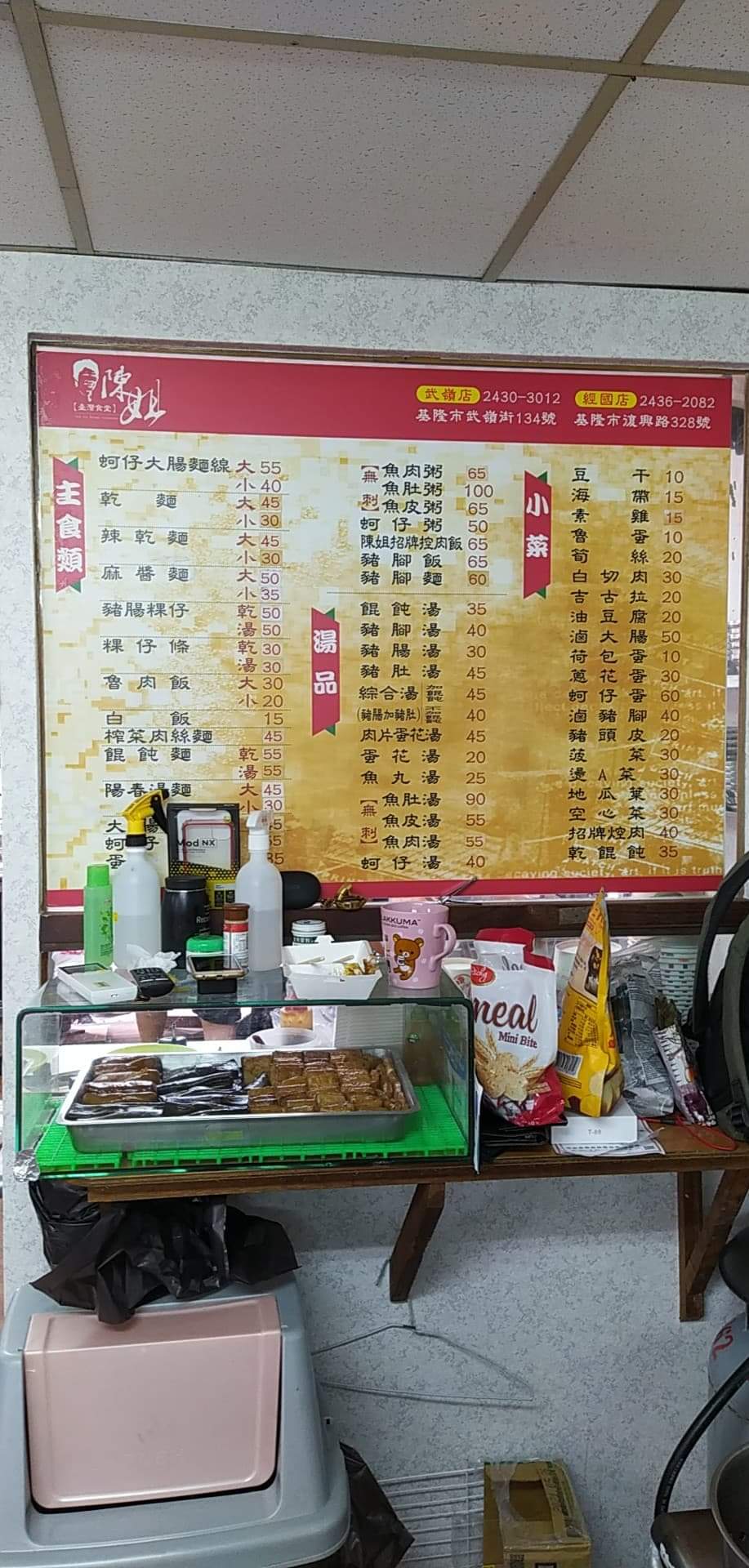 大武崙全聯附近多樣化的小吃餐館,有珂仔煎,珂仔麵線,魯肉飯,豬腳飯,控肉飯,虱目魚粥,虱目魚湯,貢丸湯,豬肚湯…….小菜,店面很乾淨,上菜速度快,生意很好。