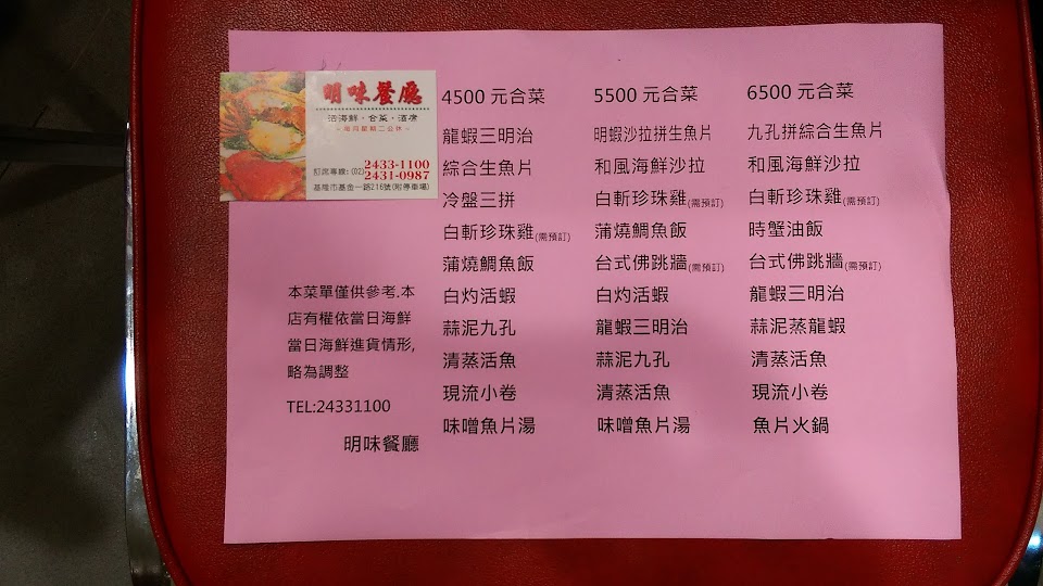 2024最新在地推薦餐廳的菜單_明味餐廳的菜單、圖片
