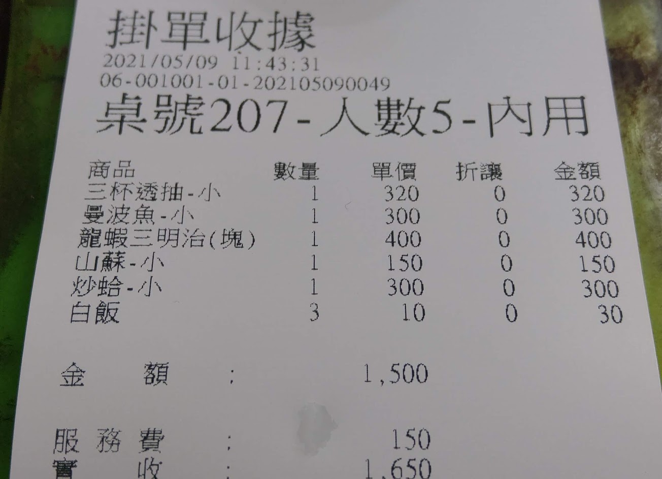 以往對海龍珠的印象是新鮮、俗又大碗,但2021/4這次用餐點桌菜有些改觀,覺得菜量變少而且沒以前好吃。不知是不是客人太多,質量變差?