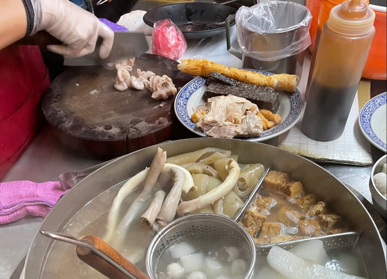 2022/07/30 位在人擠人的市場內,只有兩張桌子的座位,可支援Line、街口支付。各式豬雜、蘿蔔、關東煮,可選擇價格老闆娘隨機黑白切、份量還可、內臟處理還算乾淨,湯頭清甜、但軟骨跟豬皮都蠻硬,覺得普普。