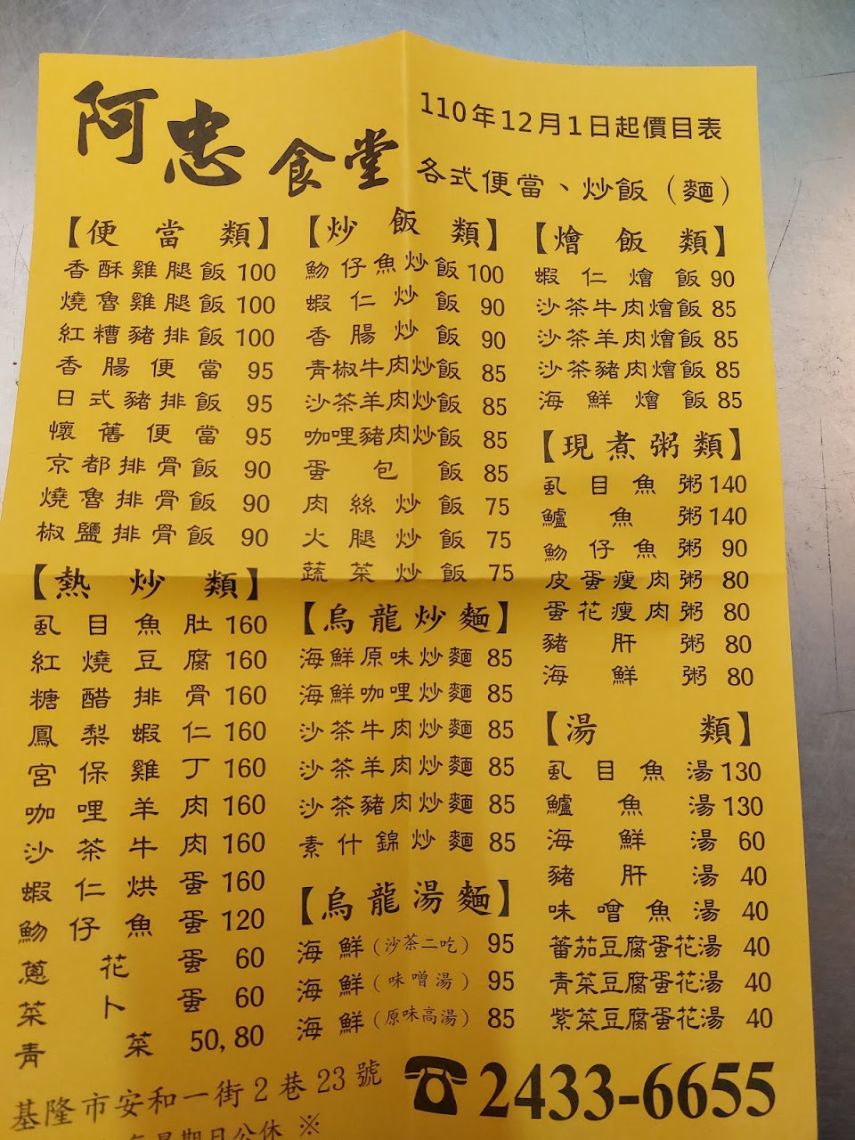 粥:4星 湯麵: 3星(海鮮麵的海鮮種類不多,但有二尾蝦.) 炒麵飯:3.5星 燴飯:3.0星。 (不要那麼鹹會再加分.) 便當: 3.0星。(菜色各有喜好,可自行體驗.) 自家外送:有 服務態度:良好