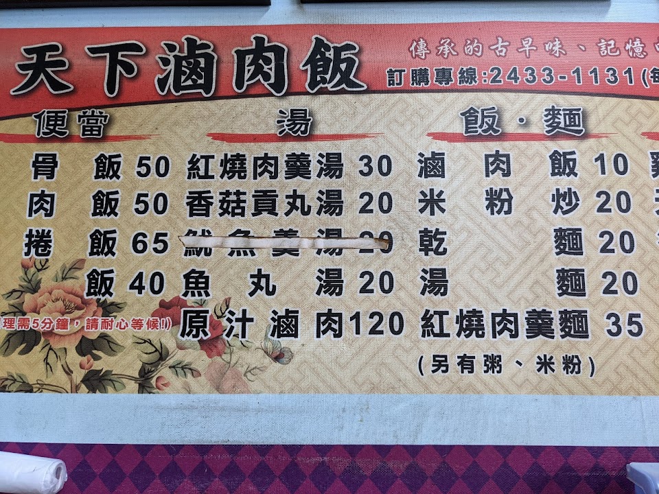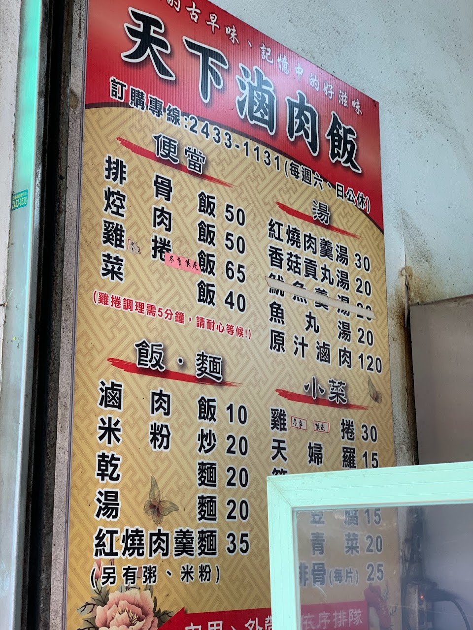 排骨飯親民價格:50元在店內吃可選擇4樣小菜:有海帶絲、三角魯豆腐、魯筍、高麗菜、紅蘿蔔絲炒蛋、小黑輪片、酸菜、魯豆腐、豆乾….客人任選四樣菜,一塊不帶骨的炸魯排肉、一碗不會太鹹的魯肉飯。紅燒肉羹湯則是紅燒肉裹粉稍微勾芡,有別於南部肉羹湯。甜不辣則是炸過切塊,推薦現場吃比較Q軟彈牙。不管是外帶或是店內吃都需排隊,在小巷內都是紅線,不好停車。中場有休息時間:15:00~16:00喔! 小本生意;店內只能付現金喔!