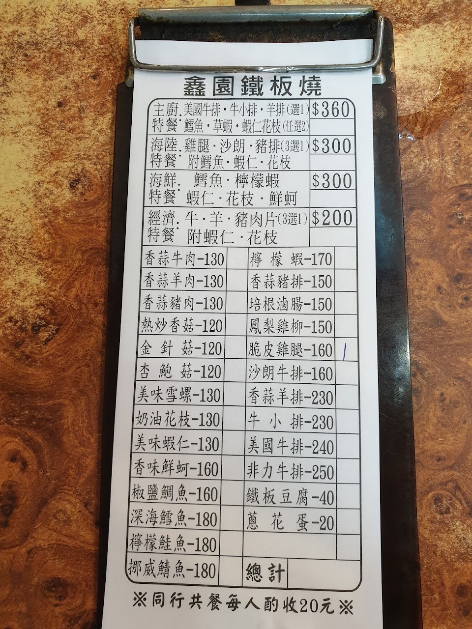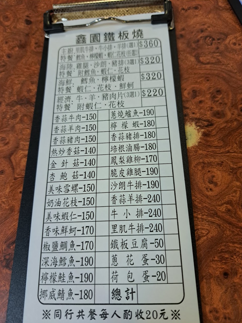2024最新在地推薦餐廳的菜單_鑫園鐵板燒的菜單、圖片