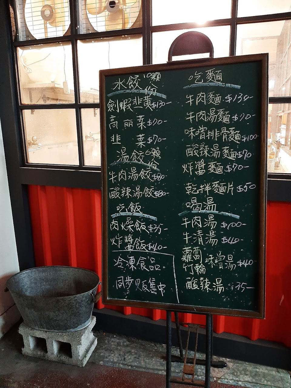 我點了韭菜水餃、酸辣湯麵、牛肉清湯,外帶。