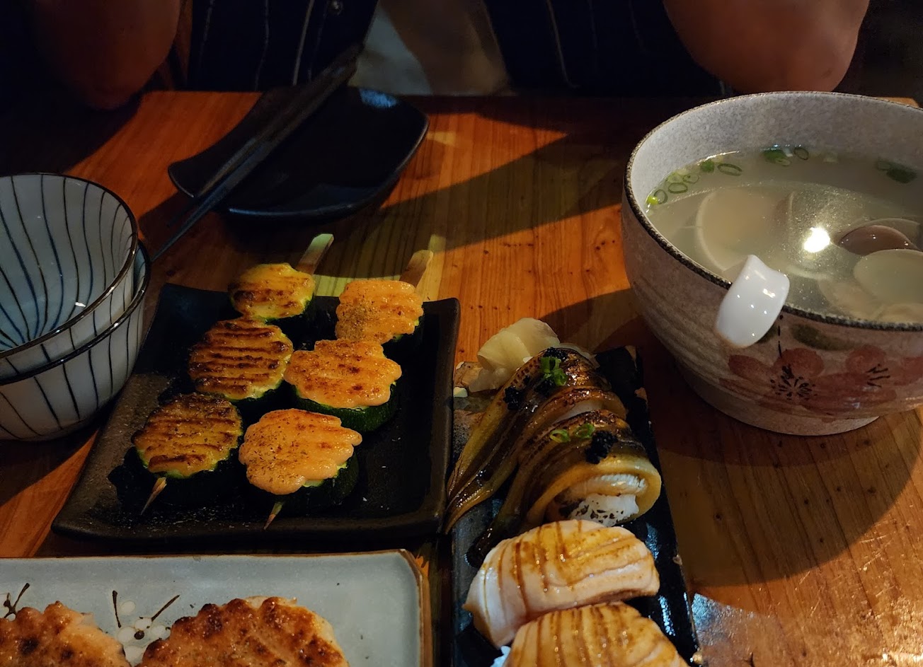 最好吃應該是鍋物和啤酒吧,其他都很普通,而且價格不便宜,鍋物要預訂,內容真材實料,一鍋850。 店家服務態度不是很好,而且都在櫃檯做壽司了,戴個口罩吧。