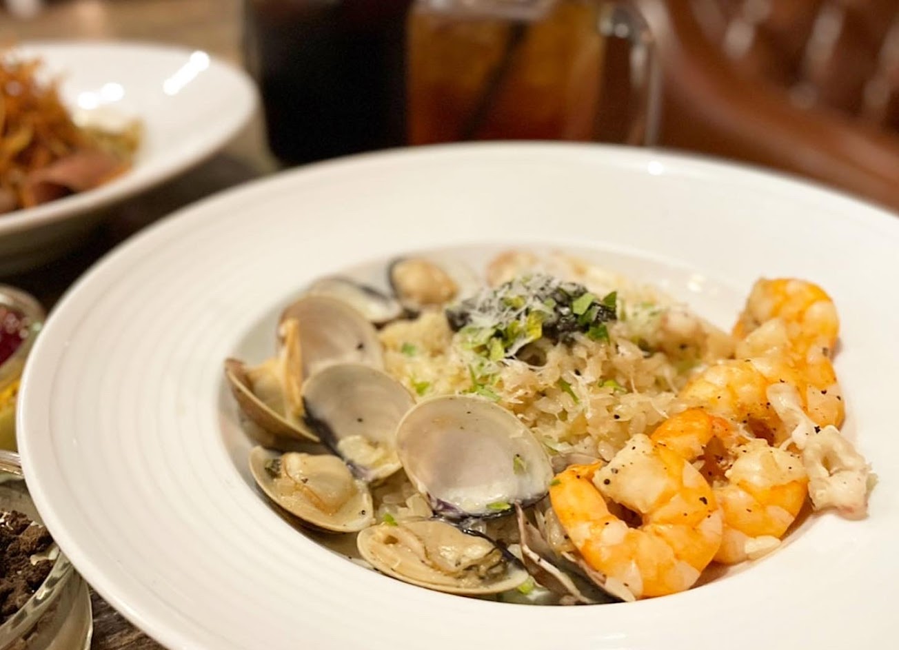 因為本身非常愛海鮮類的餐點,這家餐廳的海鮮真的讓人驚艷,今天吃了虎蝦義大利麵,海鮮總匯披薩,松露海鮮燉飯,鮭魚飯團 和鮭魚沙拉,沒有一樣讓人失望,是非常想要回訪品嚐美食的義大利餐廳,可惜沒有吃到漁夫鍋!!下次一定!!
