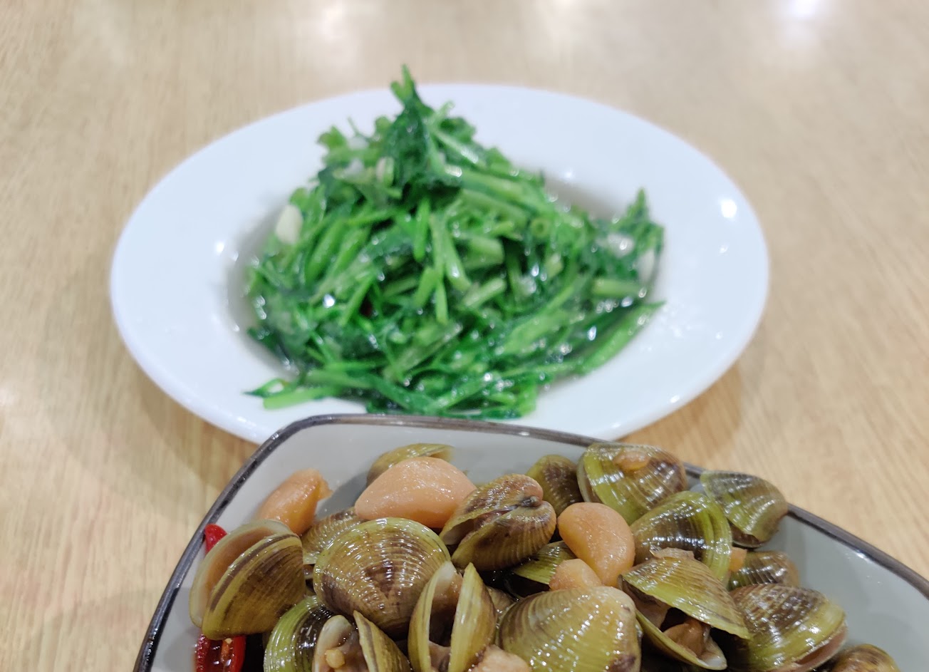 鹽酥蝦忽大忽小,炒蛤蜊臭掉的一堆,是因為只有兩個人去所以隨便煮煮嗎?