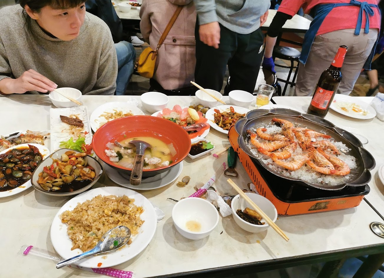 從五點吃到晚上八點…生意很好…也因為人太多菜感覺大多亂煮,生蠔不夠新鮮、酸菜白肉鍋完全沒酸菜白肉的味道、炸冰淇淋的冰淇淋也炸到融化了,算是價錢便宜的一間快炒店。