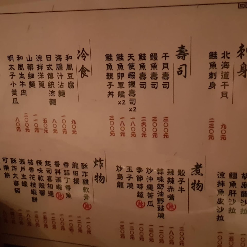 基本上無雷,但是我個人口味覺得烤鮭魚飯糰的鮭魚如果是用鹽醃製的鮭魚,我想烤出來會更香,醬略偏少飯糰烤出來不夠香有點乾口感差了點,其他餐點都很不錯最喜歡的是鮭魚生魚片跟蝶魚側邊壽司還有鮭魚卵軍艦還有花枝壽司,鮭魚非常新鮮而且250還蠻多片的非常好吃,炙燒蝶魚側邊壽司蝶魚非常肥美跟外面連鎖店比肉質緊實肥美炙燒油香四溢醋飯也很美味,鮭魚卵軍艦也很好吃不會過鹹,花枝壽司也是非常好吃肉口一瞬間感受到是醋飯的醋香味,花枝也是稍微炙燒也是肥美,燒烤類我們點了男子漢牛肉捲,還有明太子雞肉這個雞肉沒有雞腥味很不錯的吧,上來的任何熱食餐點都是熱騰騰我們還點了很多兩個人吃了1990元沒雷區.好吃