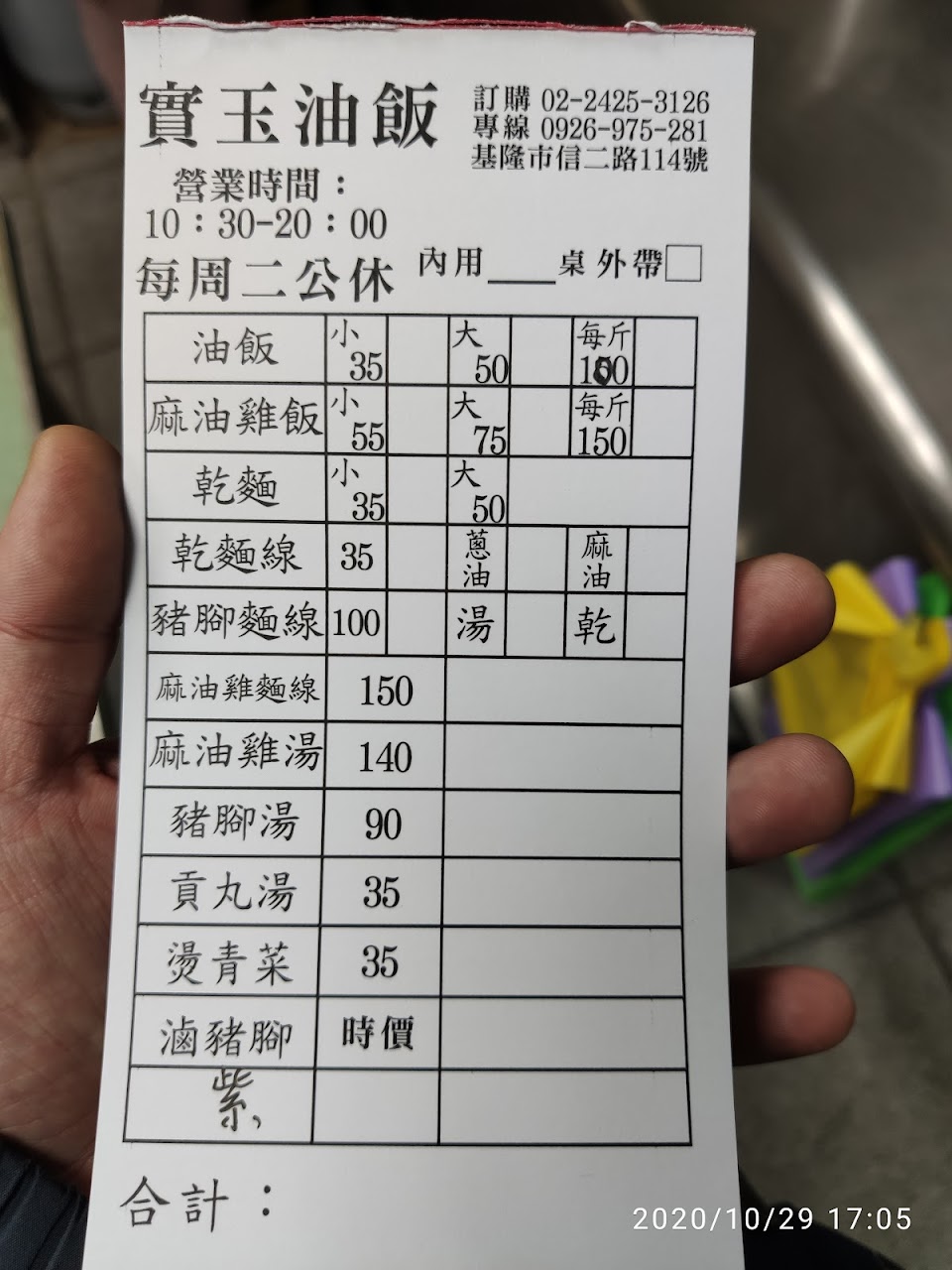 目前沒內用只能外帶,用餐的離峰時間來,沒有其他客人,老闆娘特別通融,在店外的桌上用餐,預計農曆年後才會開放內用。