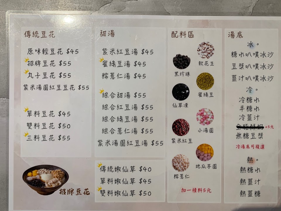 不管是豆花、湯圓、仙草或紅豆