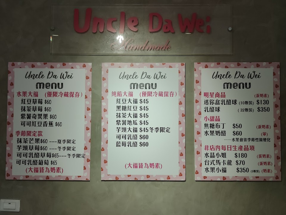 紅豆與抹茶大福都蠻好吃的,不會太甜,每個45元還可接受,另外有加水果的大福都要60元