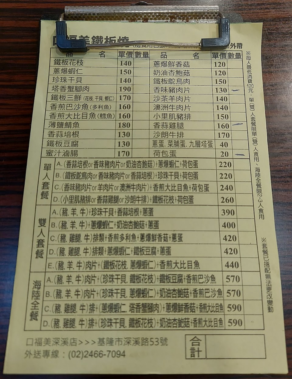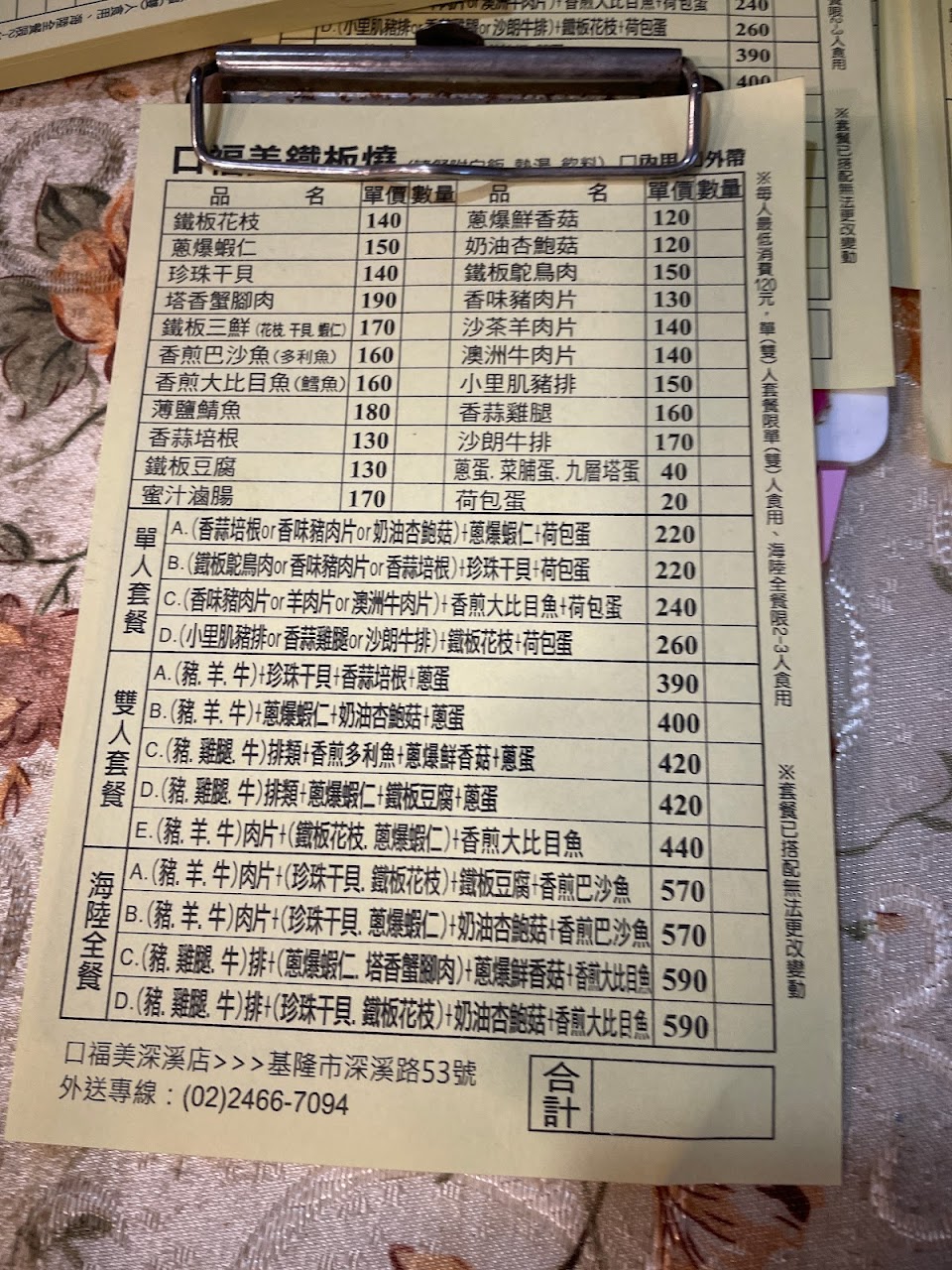 餐點:2
