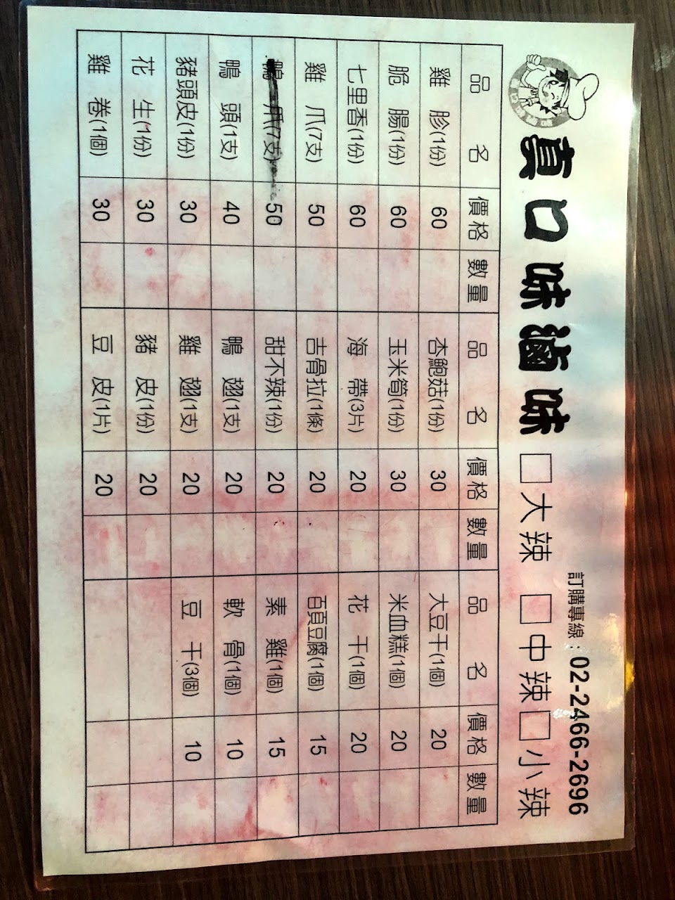 原滷味攤則下午四點在其騎樓開賣。點餐在裡面櫃檯點與結帳,自動輸單到外面滷味攤處,以手持編號點餐單拿貨,點餐流程做的很好,很有秩序不會亂,可看到用心經營的一面,是一般小吃店家沒有的,每週一固定店休,別白跑一趟。