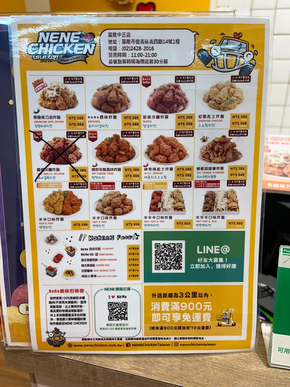 2024最新在地推薦餐廳的菜單_NENE CHICKEN 基隆中正店的菜單、圖片