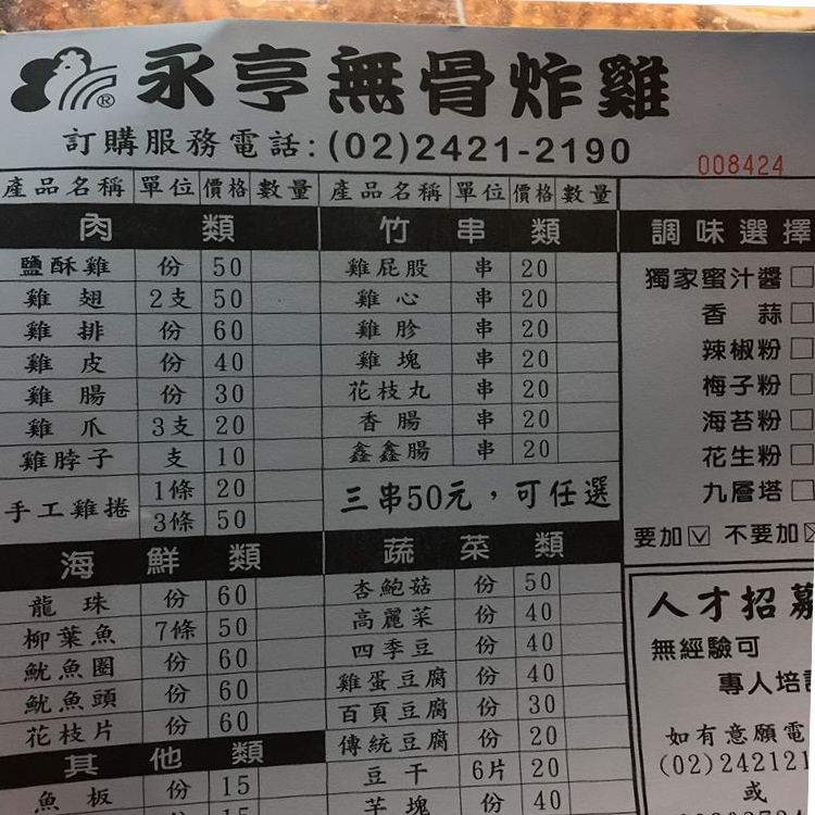 我在台北同樣價位從來沒吃過這麼大份的鹽酥雞,只是人多的時候要等很久,預約餐點的電話也忙到不會接