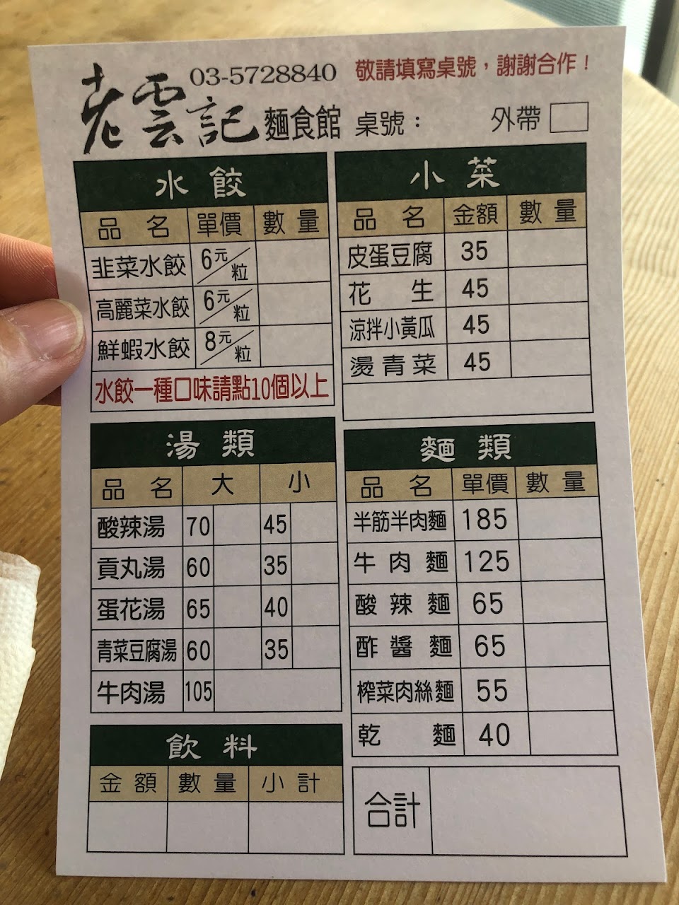 小菜,麵,湯,水餃口味都很棒 ,用料多而且實在,不吃很可惜 ! 不過這裡附近就有好幾間國高中學校與各種補習班,所以用餐時間幾乎沒位置可以坐,另外附近的停車場也沒幾個位置,只能違停建華國中門口。