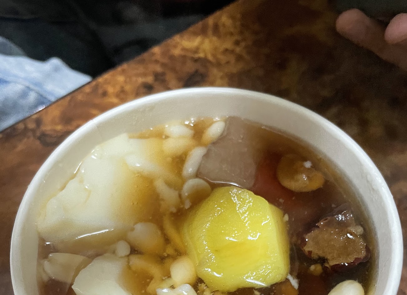 ?喜歡泰奶跟豆花的完美相遇,好喜歡老闆把泰奶煮的不那麼甜ㄗㄗ!完全不知道可以這麼match的當好朋友~豆花煮的綿密有口感,吃下去還給我跑走,濃郁的豆味跟全世界說我才是碗裡的最佳女主角。 小配角出現了!有脆圓、地瓜、粉圓、花豆、綠豆、紅豆、軟花生等等! 這次點檯 脆圓跟軟花生,這邊小小建議花生沒有軟其他都很完美唷! ?桂圓紅棗豆花:把桂圓香氣跟補元氣的紅棗,老闆大手筆加好多桂圓跟紅棗,整個養生爆表! 在暖暖的冬天很適合喝上熱熱的一碗豆花 感覺身心靈都溫暖到了!可以來吃看看