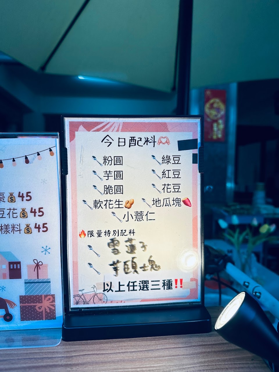 Ps:以上豆花都可可以加入三樣配料!任你選 我很愛老闆取的點名,很用心用了「兜」了解原因覺得很有趣!