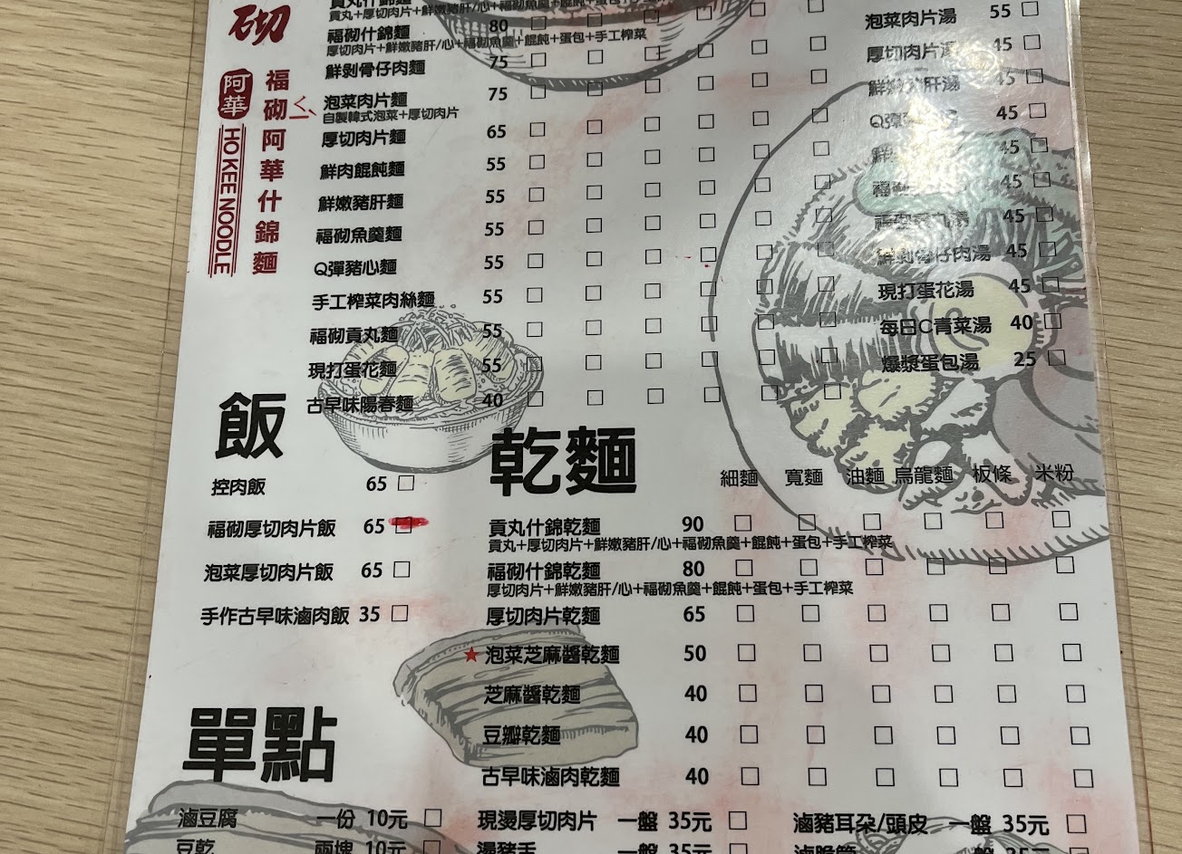 ?福砌什錦乾麵(細麵)折扣後$80 個人客製化:加辣,不要榨菜 加辣讓調味增色不少,原味對我來說滿普通的,就炸醬吧?沒有很愛。 配料獨具特色又好吃,特別是豬肝,能處理到完全沒有腥味和奇怪口感真的不簡單。 但麵體軟爛還都黏在一起,這點不及格。