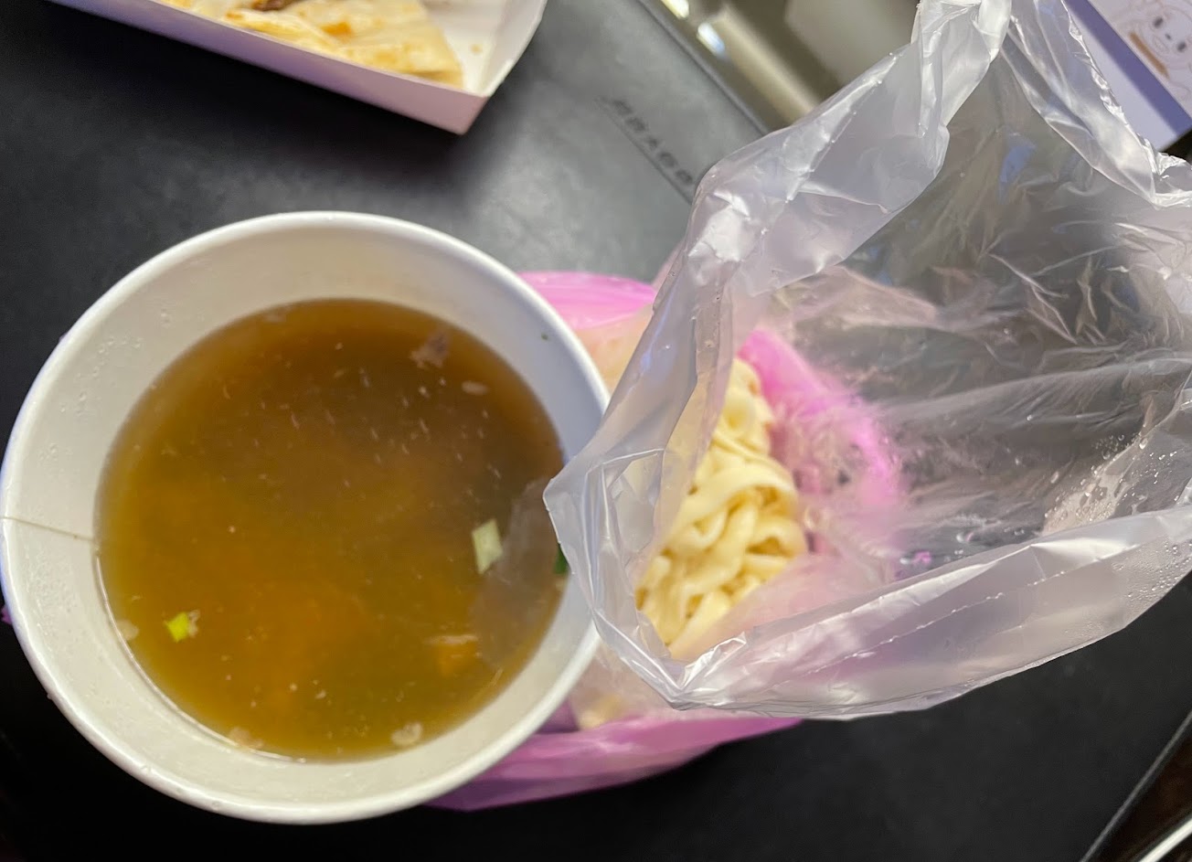 外帶加麵 結果湯還是一樣滿,整個滿出來灑到桌子都是