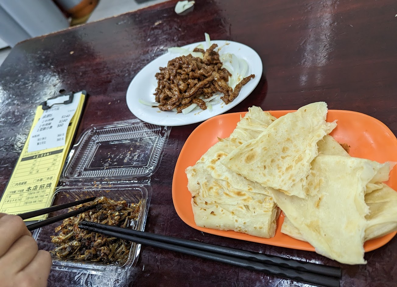 餅很有嚼勁 牛肉很軟嫩 酸豆牛肉配斤餅也很好吃 就是都比較重口一點