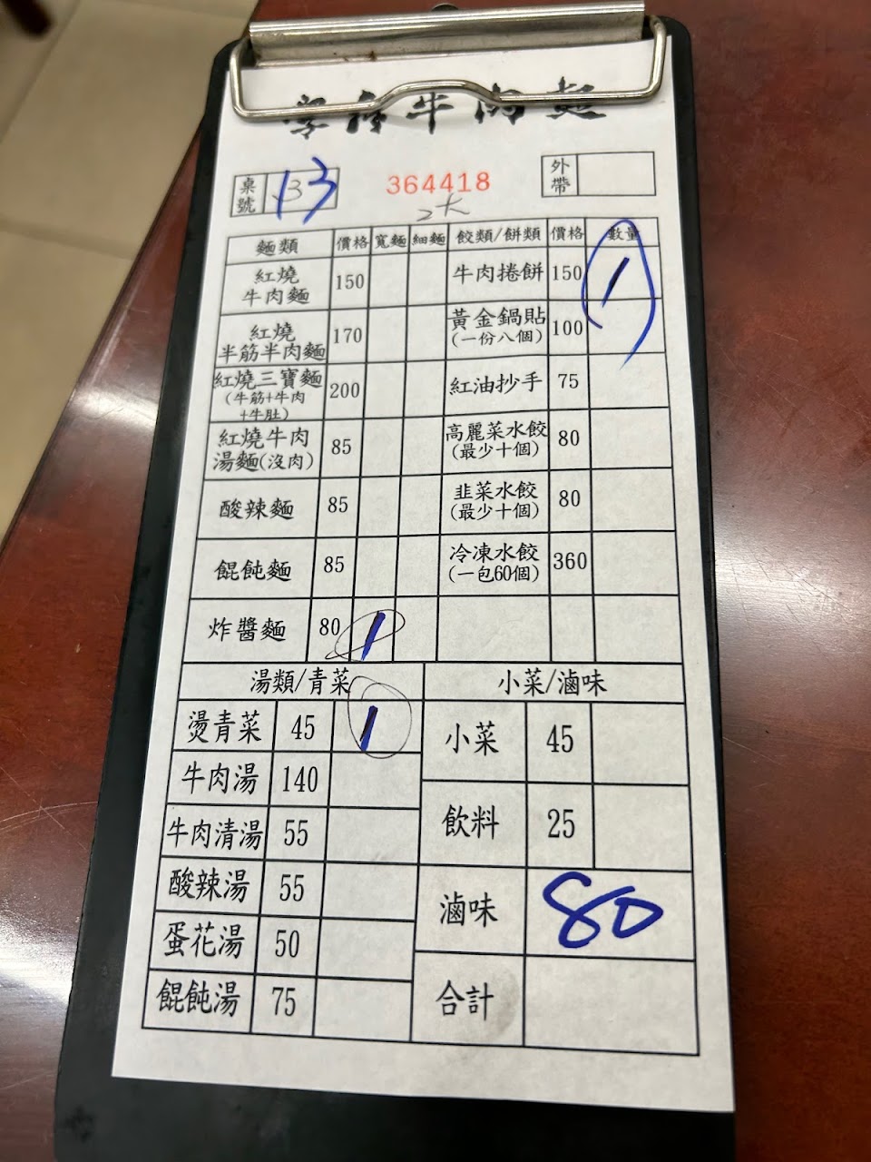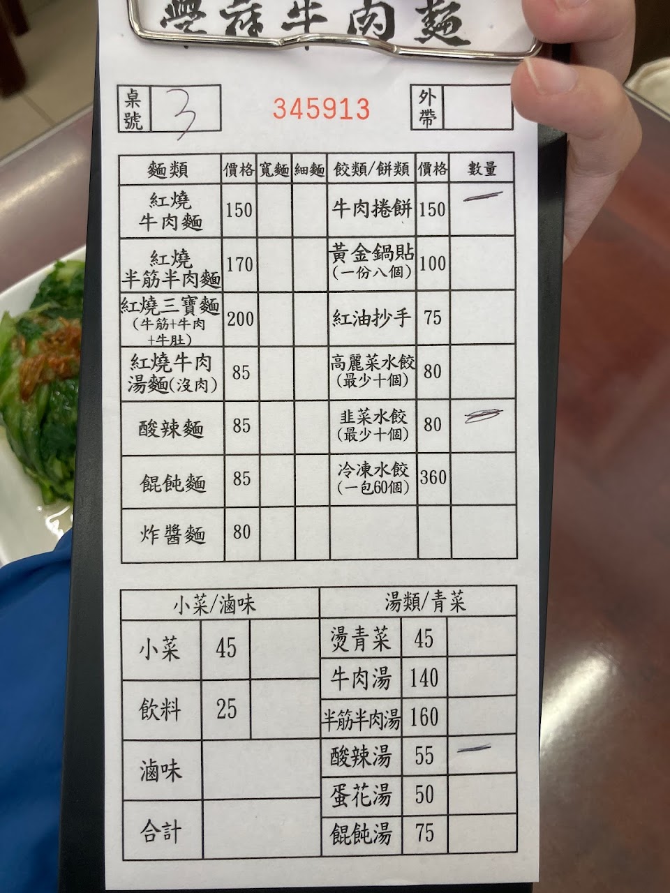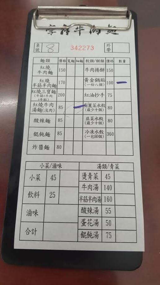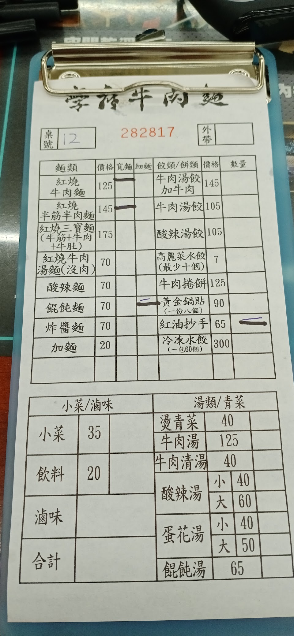 來學府牛肉麵吃晚餐,吃的餐點如下: