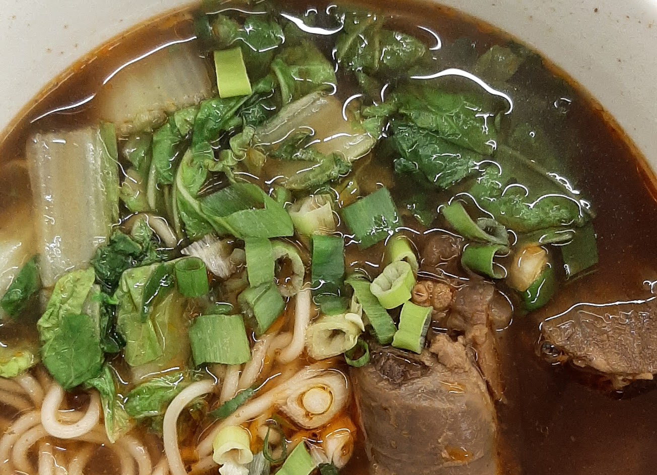 牛肉好滋味,軟硬剛剛好,品質穩定;喜歡寬麵的微嚼勁;可以配合客人需求,客製化地清燙青菜,因此很感謝