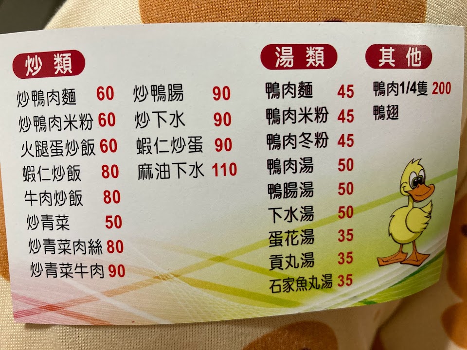 2024最新在地推薦餐廳的菜單_(原)來來鴨肉麵的菜單、圖片