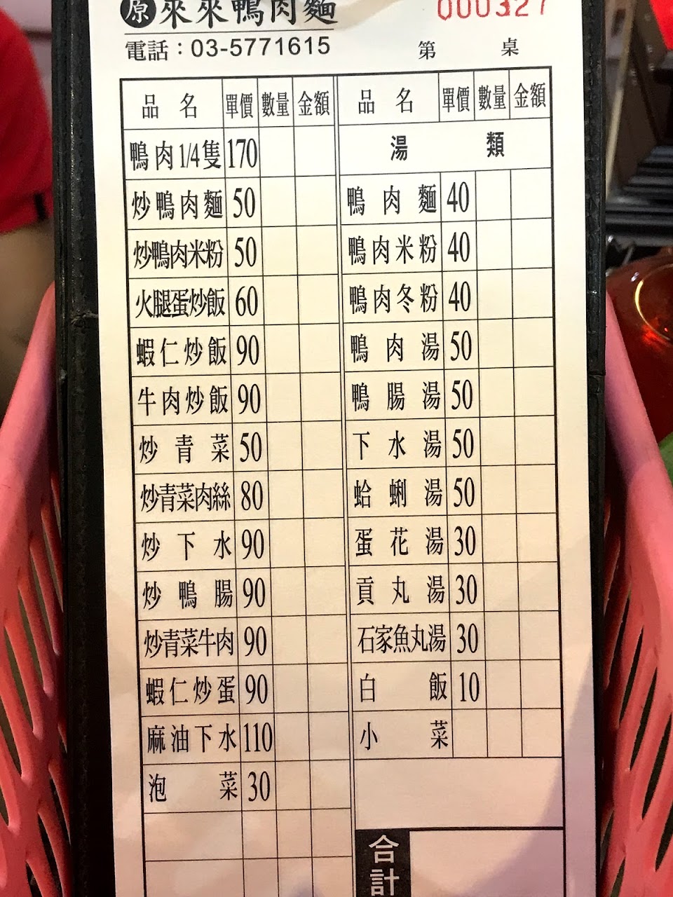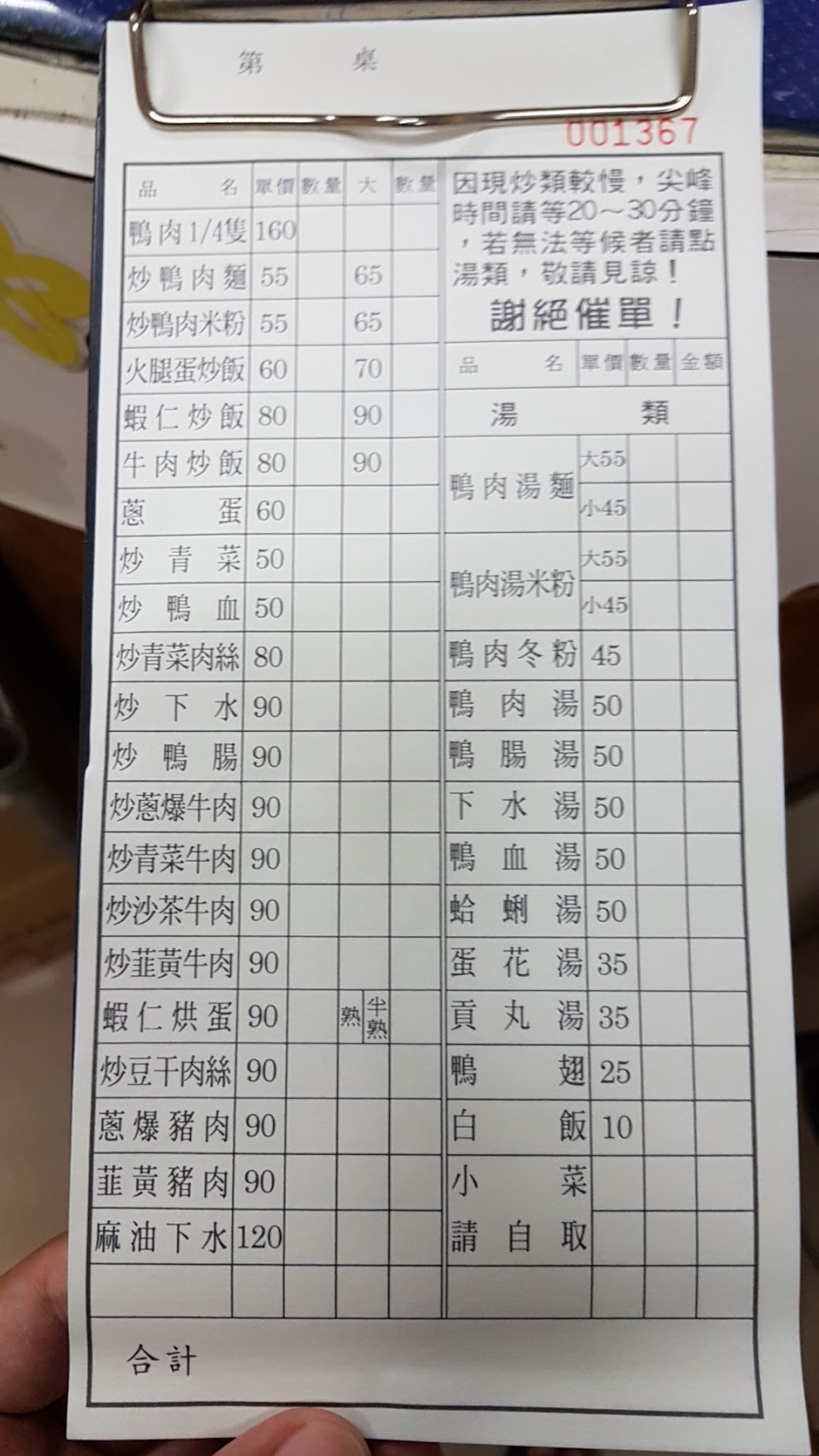 打電話訂餐時 照著你們的菜單點餐,上面寫鴨肉麵,鴨肉米粉,鴨肉冬粉,我是照點沒錯啊,這個不就是湯的