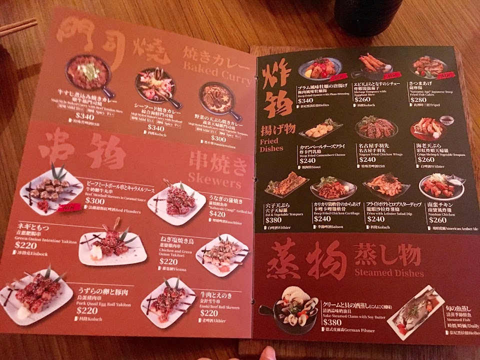 可能是店家主打餐點都有適合的酒可以配,餐點口味都蠻重的(但味增湯意外的沒什麼味增味…),調味偏甜,部份偏酸。菜單和一般居酒屋、日式料理店、bar很不一樣,較少單純的烤物、炸物,大多會在加上另外的調味醬或是沙拉等等(如咖喱天婦羅、龍蝦沙拉薯條、味增松阪豬)。