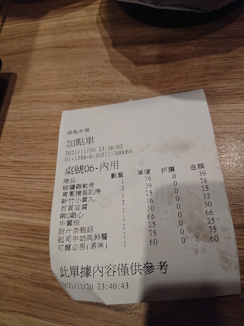 可惜了,烤的串燒偏乾扁 沒有之前那麼好吃了。