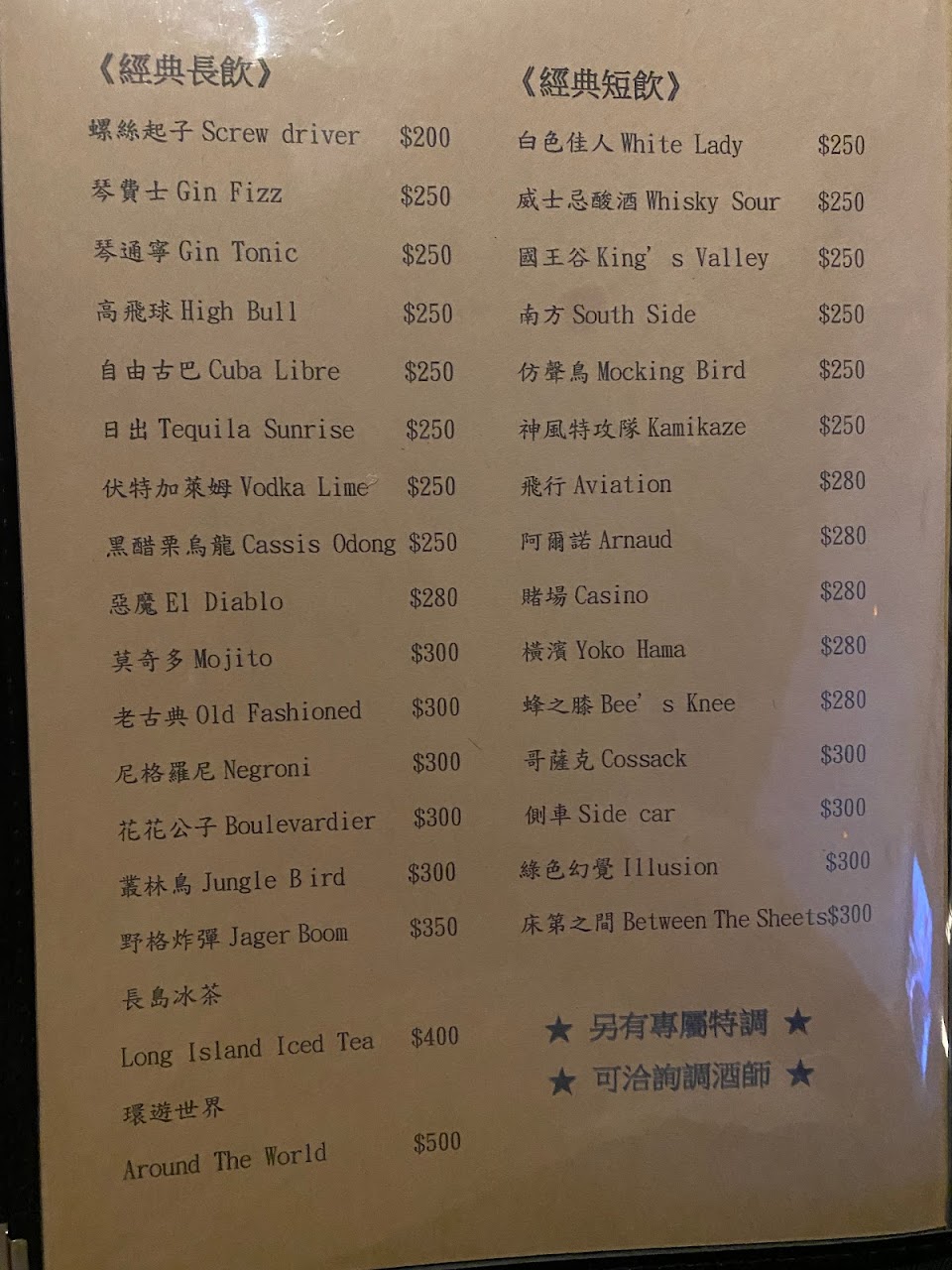 5/2晚上三人用餐,餐點非常的棒、也很有創意,價格也算划算,經典調酒的部分很大杯也很便宜~~