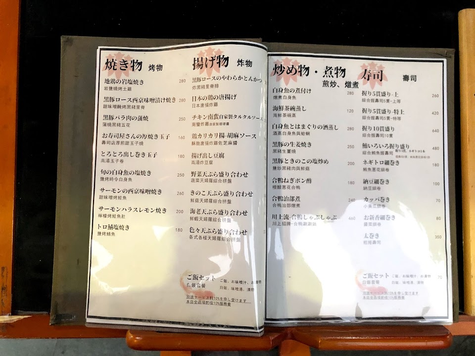 從生魚片、油炸食品、壽司到咖哩,涵蓋了廣泛的顧客群體,從公司同事到家庭再到單身常客。台灣顧客較多,建議去之前先預約。