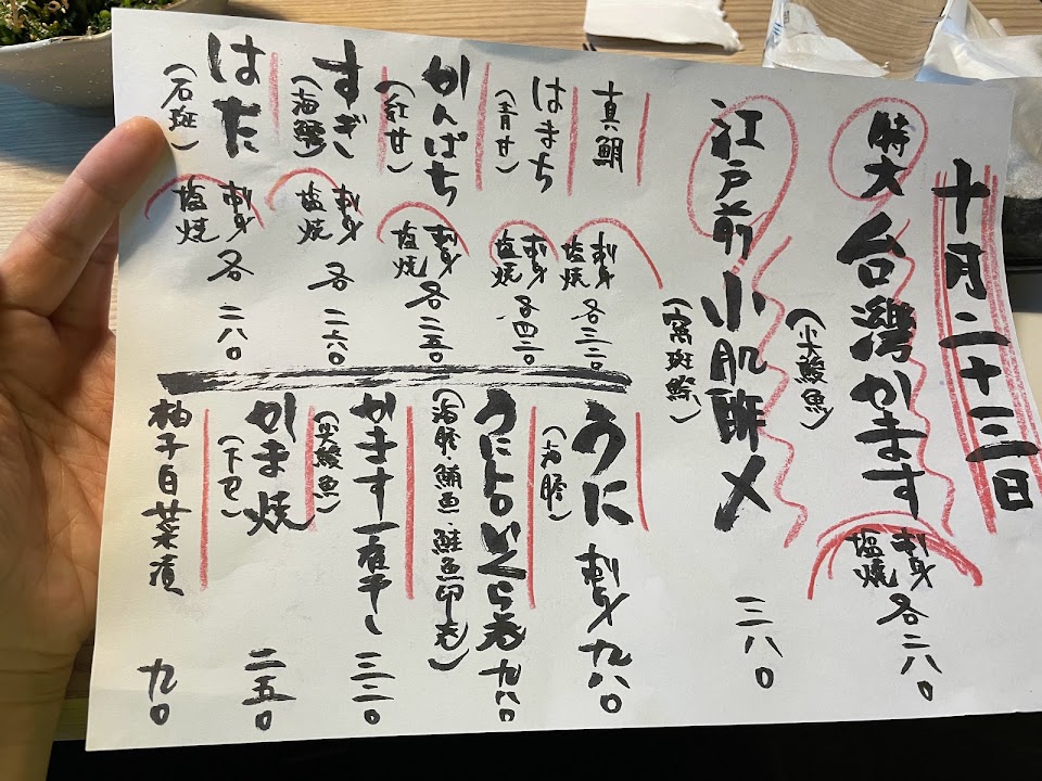店員大部份都是日本人,菜單也是涵蓋中日文的介紹,另外還會附上一份手寫的當日菜單(感覺字很漂亮有誠意ʘ‿ʘ)